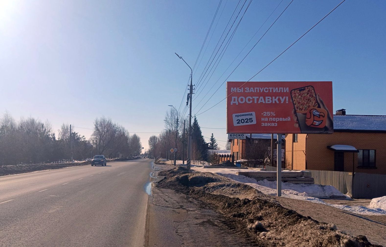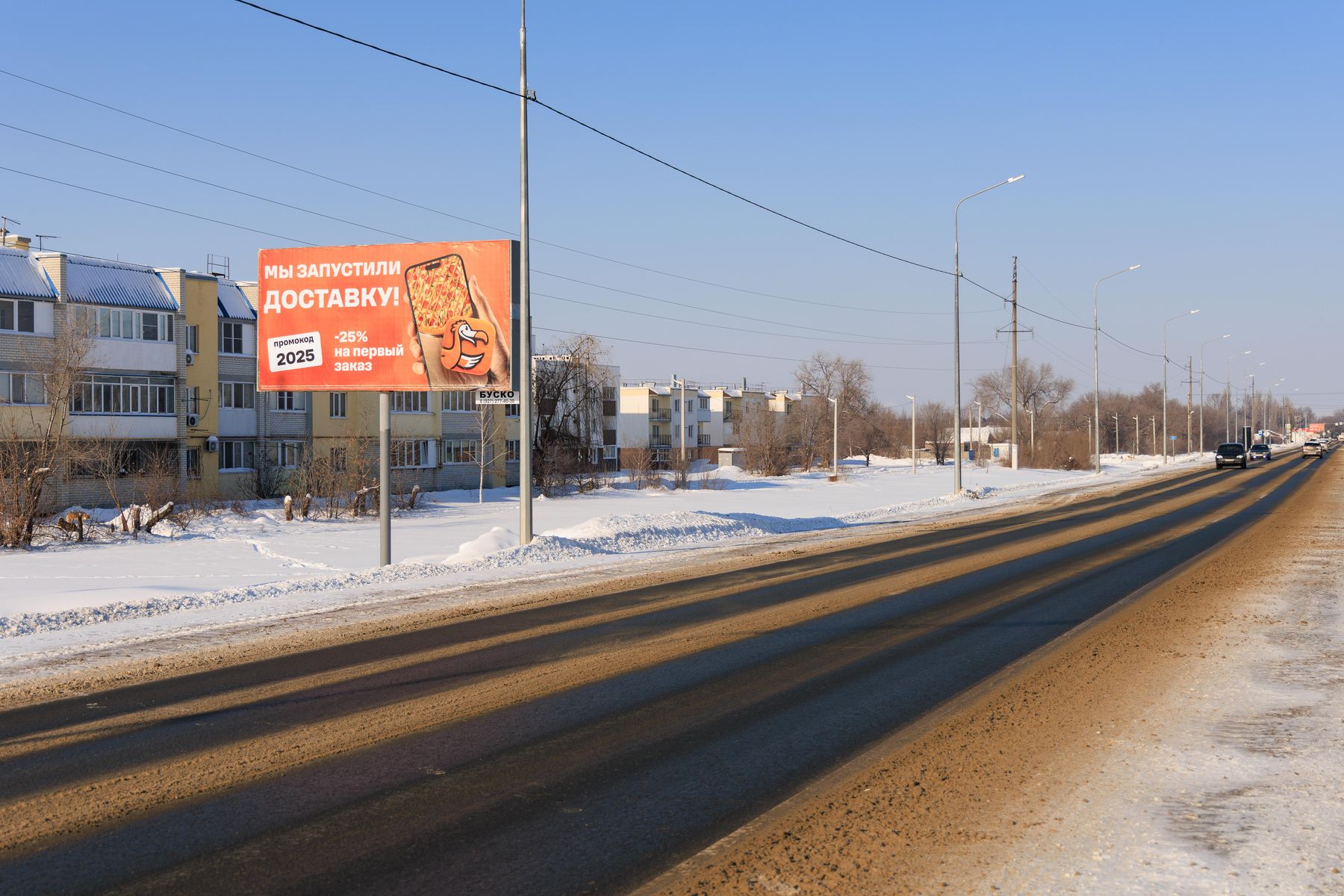 Продолжается рекламная ooh-кампания открытого кафе ДОДО ПИЦЦА в Приволжском (Энгельский район). Ранее размещались банеры по набору персонала и анонсу открытия вкусного заведения. В феврале 2026 - реклама доставки. Щиты расположены в пригороде города Энгельса на въездных - выездных магистралях (п. Геофизик и на Волжском проспекте).